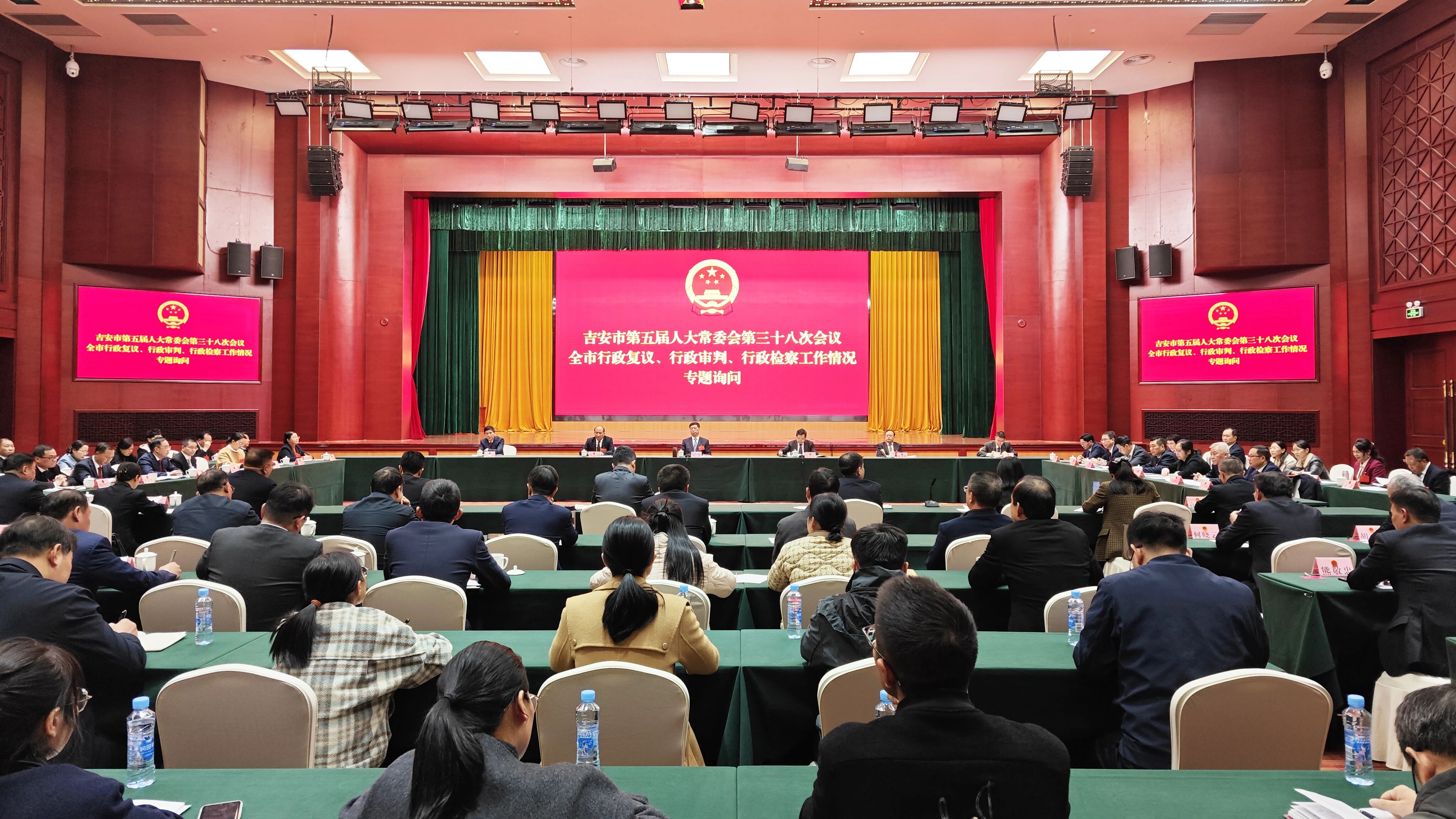 11月20日下午,吉安市人大常委会举行联组会议,围绕行政复议、行政审判、行政检察工作开展专题询问。本次会议系市人大常委会首次探索围绕同一主题,同步听取和审议“一府两院”专项工作报告,并对“一府两院”同场进行专题询问。吉安市人民检察院党组书记、检察长赵志明,党组成员、副检察长周珣就行政检察工作到会应询。